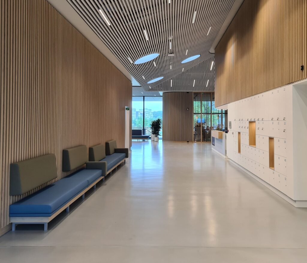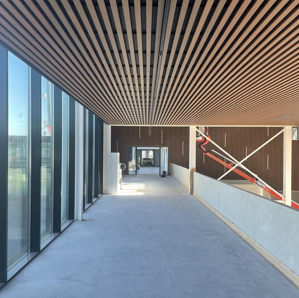 Primeur voor Technoforum met houten wand- en plafondsysteem van Dalhem Ribba