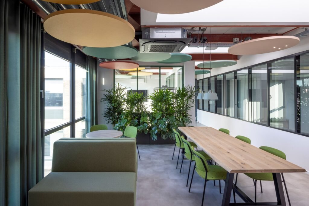 Nieuw plafond Ecophon lijkt te zweven bij Coach & Result in Ulvenhout