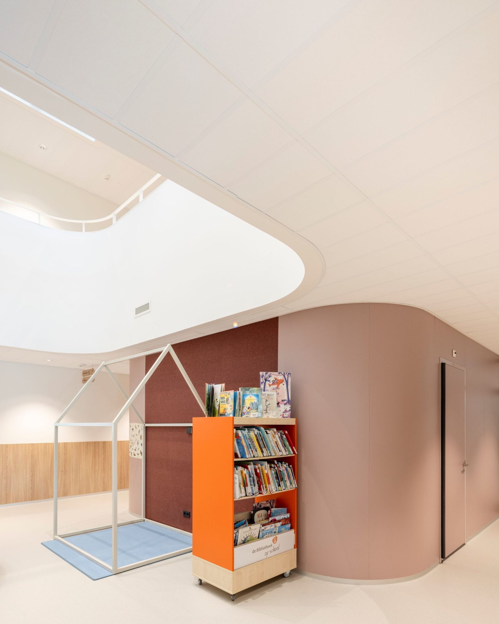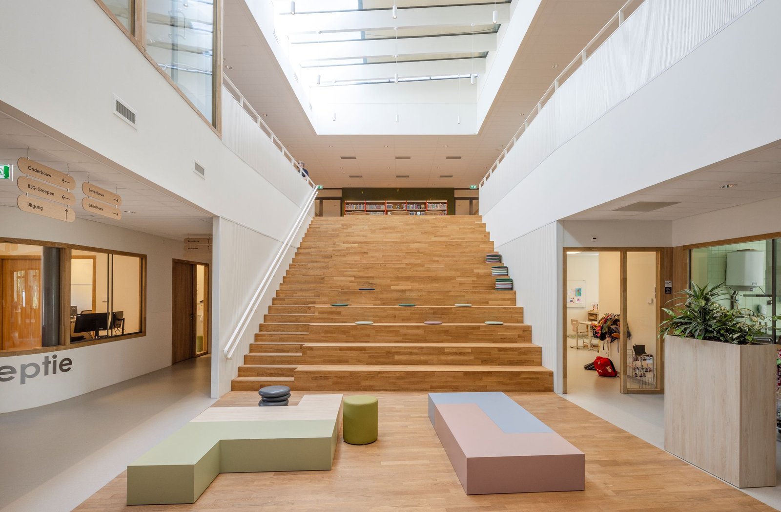 Ruben vervolgt: “De boven-, midden- en onderbouw, én elk klaslokaal heeft een eigen, herkenbare kleur. Deze kleur is doorgezet in de aangrenzende toiletten en in de nevenruimte die bij elk lokaal hoort. In deze rustige ruimte kunnen kinderen individueel worden begeleid of even tot zichzelf komen om prikkels te verwerken.”