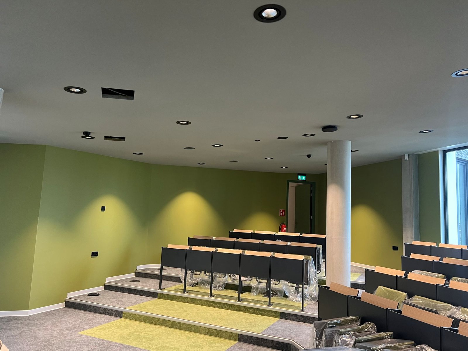 Daar waar projecten in een verstedelijkte omgeving vaak logistieke uitdagingen opleveren, was dit voor wat betreft de afbouw van het Rodenborch College geen probleem, stelt Janse. “De school is op een voormalig braakliggend terrein gebouwd, we hadden dus alle ruimte om onze materialen op de juiste plek te krijgen. Wat wel logistiek opmerkelijk was bij dit project, was de omgekeerde volgorde waarin moest worden gewerkt. Deze volgorde was door de aannemer bepaald en had te maken met de levering van de vloer. Die kon namelijk alleen worden geleverd voordat wij aan de slag konden. Daarom moesten wij werken op de al gelegde, afgedekte vloer. Dat heeft echter geen problemen opgeleverd.”