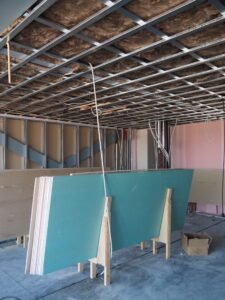 Het project begon voor producent Knauf al in een veel eerder stadium. In 2020 benaderde Loek Sistermans, commercieel manager bij Bolton Renovatie, de aannemer die het project verzorgt, adviseur Jacco van ’t Hof van Knauf.  “We zaten in de calculatiefase met een aantal uitdagingen op het gebied van geluid- en brandwerendheid”, vertelt Sistermans bij navraag. “Met name vanwege de eisen die aan opbouw van de woningscheidende wanden en aan de vloeren werden gesteld. Vandaar dat we al in een vroeg stadium met Knauf wilden schakelen. Op basis van eerdere ervaringen en een prettige samenwerking wist ik dat zij weten waar de pijnpunten zitten om zo samen tot de juiste oplossingen te komen. Het gebeurt sowieso steeds vaker dat we, zeker bij een dergelijk complex transformatie woningbouwproject, in een vroeg stadium al de expertise uit de markt inschakelen. Doordat die aan de voorkant aanhaken, krijgt een adviesbureau ook steeds meer een controlerende rol bij een project.”