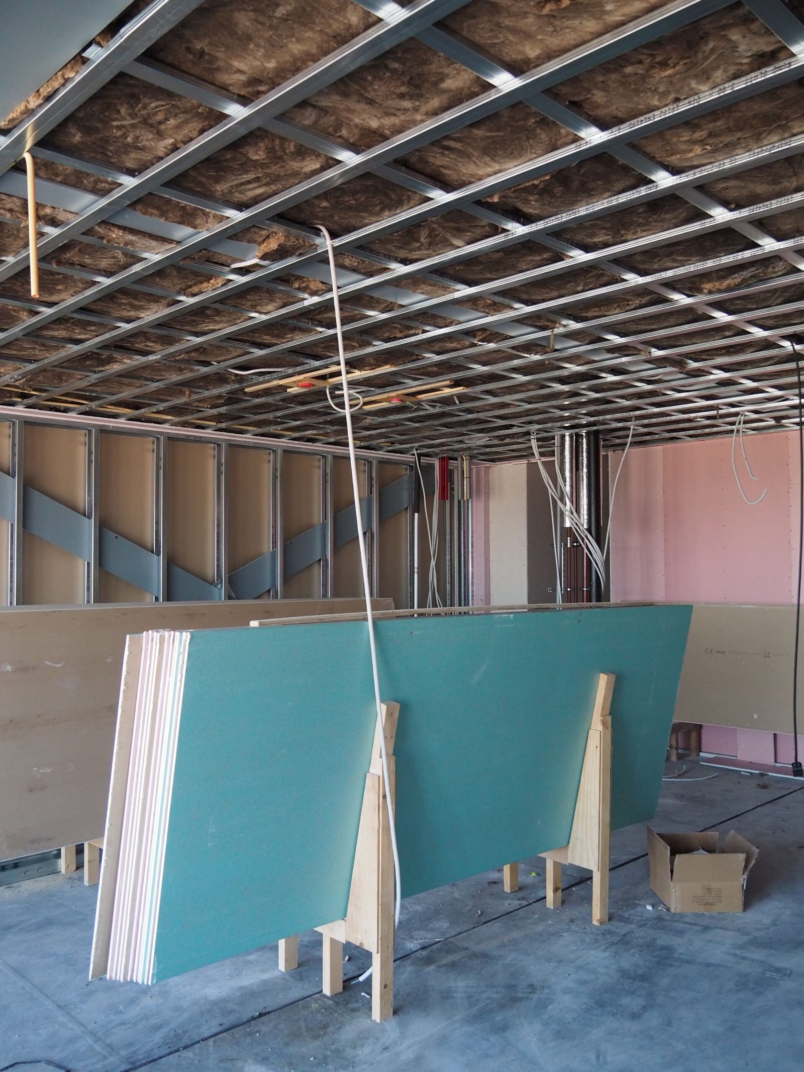 “Het bekleden van de kruizen van het stalen frame van de houtskeletbouw vormde eveneens een uitdaging. De wanden mochten uiteraard de kruizen niet raken in verband met mogelijk contactgeluid. Vandaar dat daar overal een viltlaag is aangebracht om dat te voorkomen”, vult projectleider Heij aan.