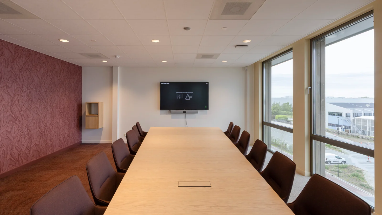 Naast het monteren van de wanden, de wandpanelen en de plafonds heeft het afbouwbedrijf uit Nieuw-Lekkerland “heel wat getimmerd”, aldus Sjaak. “Bijvoorbeeld de houten ombouw van het grote beeldscherm in wat wij de Dome noemden. Je kunt deze ruimte – geheel zwart gekleurd, van de vloer tot en met het Rockfon Color-all plafond in de kleur Charcoal – met een gordijn afsluiten waardoor je de sfeer van een bioscoop creëert, vandaar onze benaming. En we hebben zo’n negenhonderd meter aan koven getimmerd, zowel van gips als van hout. In de kantoorbeuken hebben we gordijnkoven getimmerd, in de open ruimtes gipskoven met plantenbakken. Al met al is het voor ons een behoorlijk project geweest: 8.000 m² MS-wanden inclusief afwerking en stucwerk, 6.000 m² systeemplafonds – naast de genoemde Color-all (Special) en Pallas plafonds van Rockfon hebben we ook op de toiletruimten Rockfon CleanSpace gemonteerd – en circa 500 m² akoestische wandbeplating. We zijn er precies een jaar zoet mee geweest, maar het eindresultaat mag er zeer zeker zijn. We zijn er met recht trots op!”