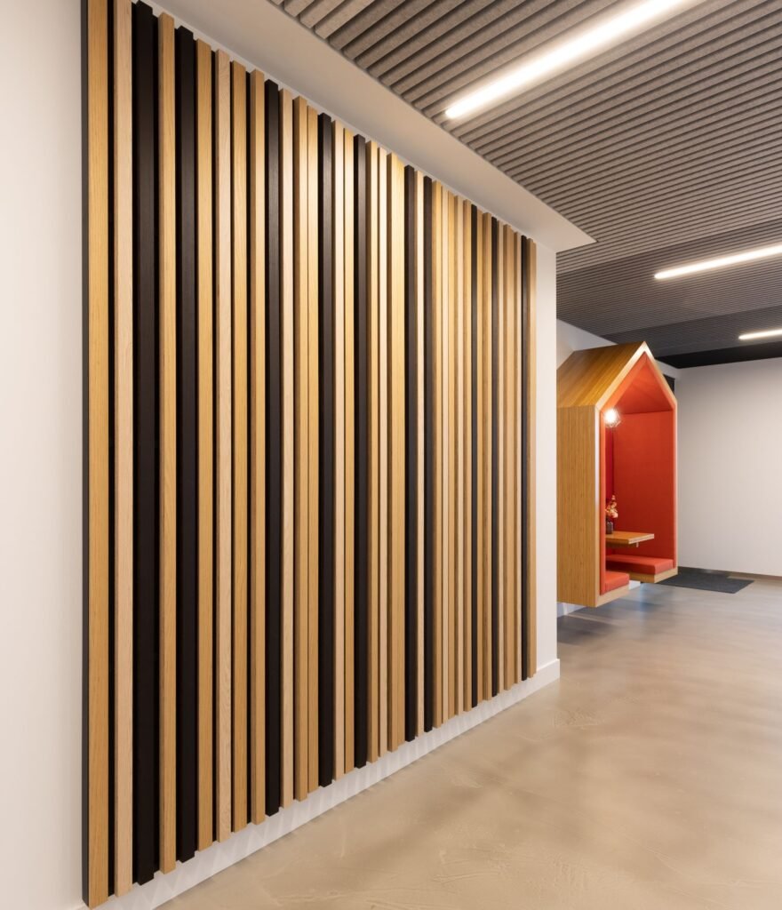 Primeur voor Technoforum met houten wand- en plafondsysteem van Dalhem Ribba
