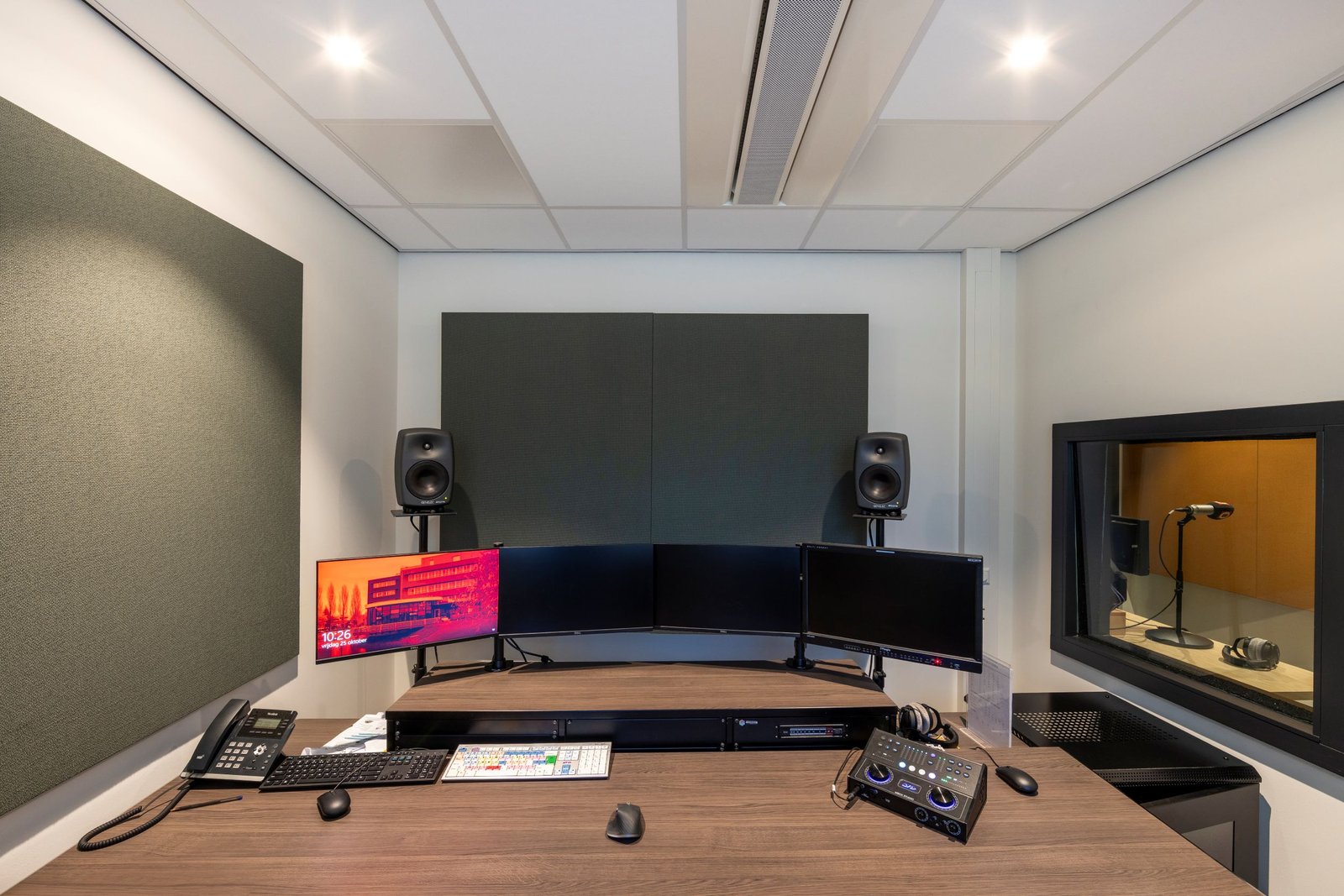 Een opnamestudio voor bijvoorbeeld radio-uitzendingen is bij uitstek een plek waar een perfecte akoestiek een vereiste is. Dat geldt ook voor een redactieruimte waar redacteuren achter het nieuws aan zitten, bellen, schrijven, overleggen. Een galmende ruimte zorgt immers eerder voor vermoeidheid aan het einde van de werkdag. Daarom besteedde Omroep Brabant veel aandacht aan het creëren van een goede akoestiek bij de renovatie van de hoofdvestiging in Son. De uitdaging voor Element Breda Afbouw uit Brabant zat hem in de montage rondom bestaande installaties, aldus projectleider Iwan Petersen.