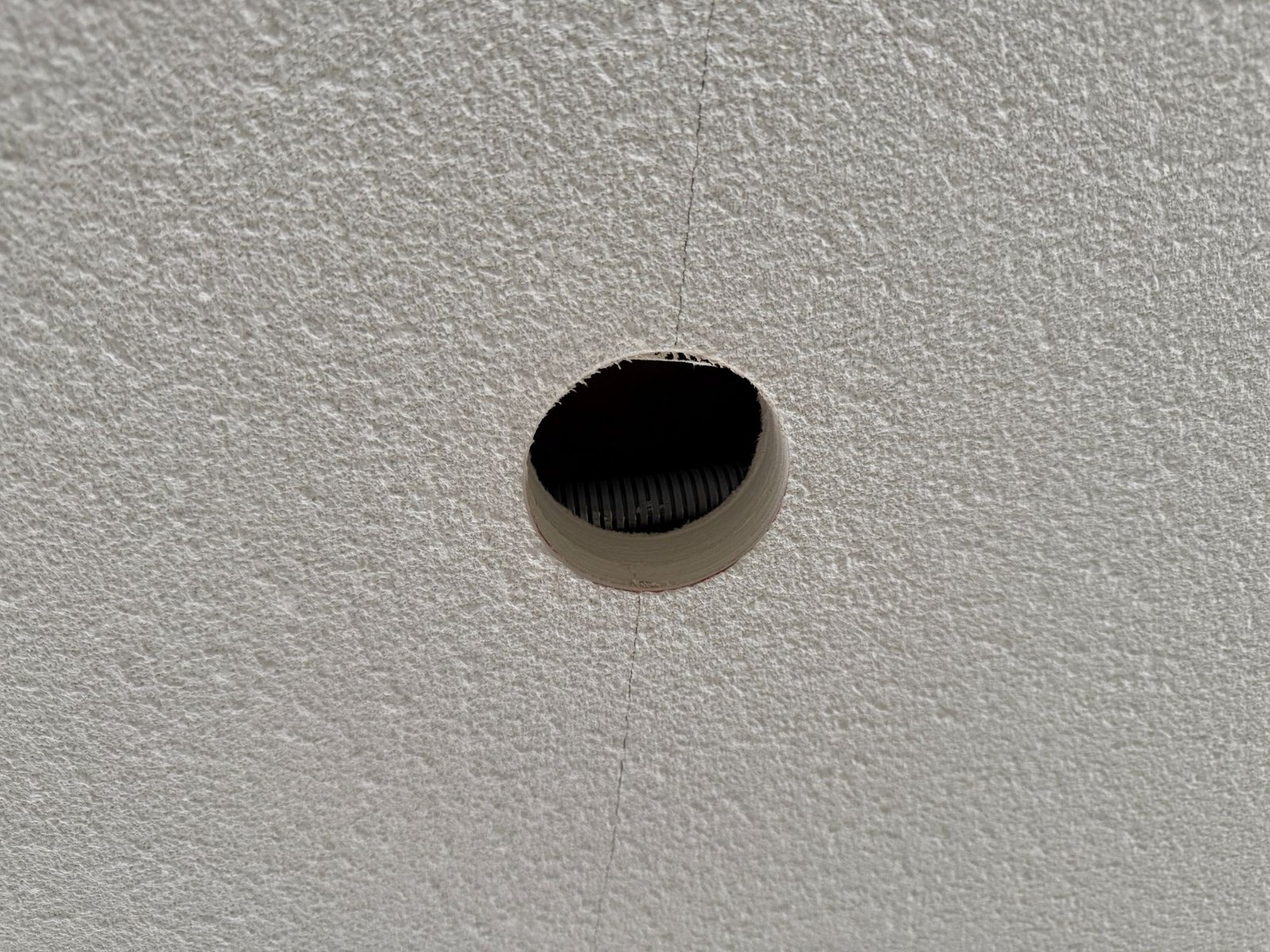 Een afbouwbedrijf heeft in een appartementencomplex gipskartonplaten plafonds geplaatst. De naden zijn volgens Klasse D afgewerkt. Daarna zijn de plafonds voorzien van spackspuitwerk. Enkele weken later ontstaat in enkele appartementen scheurvorming in het plafond. TBA krijgt de vraag wat hiervan de oorzaak kan zijn. Tijdens een controle worden inderdaad scheuren in enkele plafonds geconstateerd. Deze bevinden zich allemaal ter plekke van een langsnaad van de gipsplaten. Met een boormachine worden in twee plafonds gaten gezaagd. De boorkernen laten zien dat in beide gevallen gaasband als wapeningsband is toegepast. Dit is echter al sinds 2021 niet meer toegestaan voor de afwerking van gipsplaten op plafonds. De scheuren zijn het gevolg van krimpspanningen in het plafondvlak. Deze spanningen zijn op te vangen door de juiste producten toe te passen. Gaasband is te zwak om deze spanningen op te vangen. Daarom is TBA Richtlijn 3.3 in 2021 aangepast. In de aangepaste versie staat dat gaasband op plafonds niet meer is toegestaan als wapeningsband. De toegestane producten zijn papierband of glasvliesstroken. Bij de montage zijn dus de verkeerde producten toegepast. Na het constateren van de scheuren zijn de plaatnaden opengezaagd, de ondergrond geprimerd en opnieuw gevoegd met papierband.