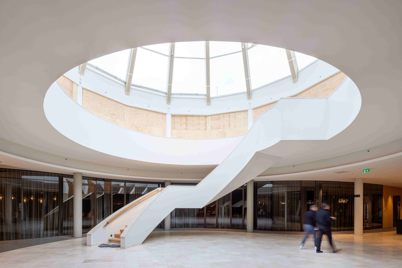 Het oorspronkelijke gebouw was opgebouwd met een aantal schillen die achter elkaar waren geplaatst. Dit was volgens architect De Bruijn niet echt gebruiksvriendelijk. “De combinatie van de schilvorming en het feit dat van binnen alles symmetrisch was ontworpen, zorgde voor een gevoel van desoriëntatie. Je was snel de weg kwijt, wist niet meer waar je je in het gebouw bevond. Wij hebben met ons ontwerp de symmetrie los gelaten, er meer logica in gebracht, een duidelijke, natuurlijkere routing gecreëerd.” Dit heeft Fokkema & Partners onder andere gedaan door direct achter de entree aan de zijkant een extra trap in het ontwerp toe te voegen, aldus De Bruijn. “De trap zorgt voor een betere toegankelijkheid, een duidelijke verbinding en meer dynamiek in de ruimte. De vloeiende vorm van de trap sluit ook goed aan bij de ronde vormen van het gebouw.”